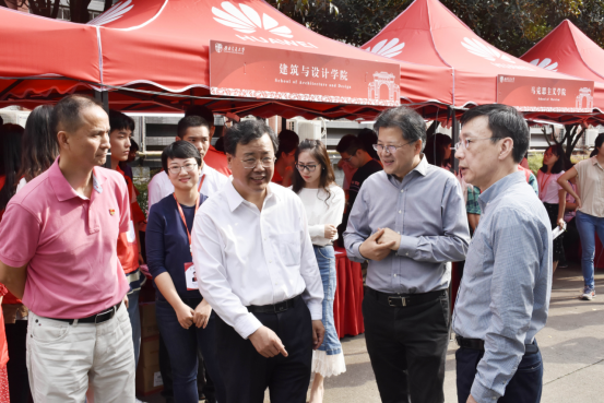 迎新点,与迎新工作者们亲切交谈,在各方面给予了相应的指导,肯定了老师与同学们的工作,赞扬了志愿者们有条不紊、积极热心的工作态度。下午4点,校党委书记王顺洪,校长杨丹来到卡通a片