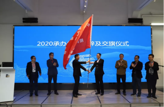 院长孙澄教授手中。接旗后,孙澄教授致辞祝贺本次大会的圆满成功,并表示要把建筑教育的接力棒接好,同时向全国建筑教育界同仁发出邀请,2020相约冰城——哈尔滨。