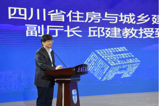 校副校长姚发明,中国工程院院士、教育部高等学校建筑类专业教学指导委员会副主任委员刘加平院士,中国建筑学会赵琦副理事长,四川省住房和城乡建设厅副厅长邱建分别致辞。