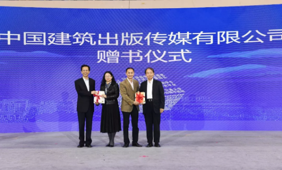 开幕式上举行了中国建筑出版传媒有限公司的赠书仪式。王建国院士与中国建筑出版传媒有限公司咸大庆总编辑上台赠书,卡通a片