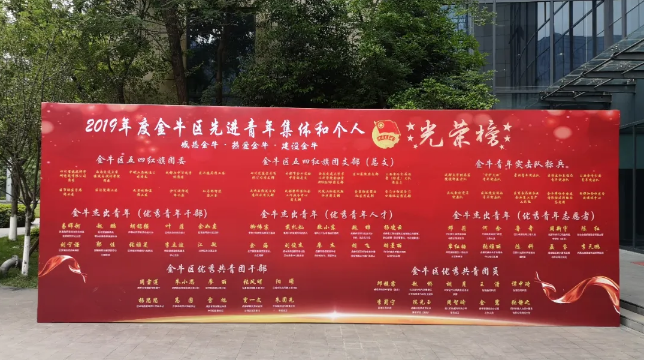 现场,金牛区对2019年度“五四”先进集体和先进个人进行了表扬通报并颁奖。其中,先进个人代表包括优秀青年干部、优秀青年人才、优秀青年志愿者、优秀共青团干部、优秀共青团员五类一共50人,先进集体代表包括五四红旗团委、五四红旗团支部(总支)、青年突击队标准三类一共30个。