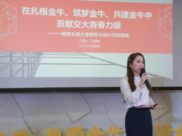 建筑与设计学院团委荣获成都市金牛区“五四红旗团委”荣誉称号。学院团委书记孔翔榆代表学院团委在“五四”优秀(“蓉漂”)青年沙龙中做工作成果分享。