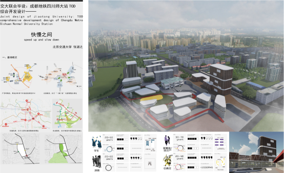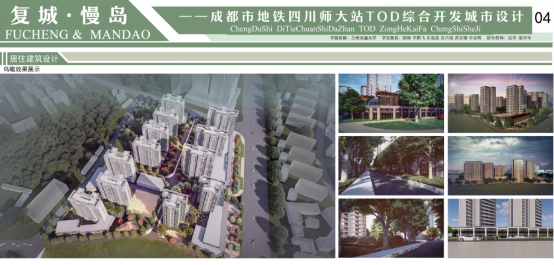 参加答辩的刘天宇、尤晨淳、洪青源、郭容、周睿同学的设计作品《活力生长·成都四川师大站TOD综合开发项目设计》以在大型中心城市中寻求如何提高土地开发强度并整合轨道交通资源为出发点,探究了在一体化开发中功能,尺度,空间三者的有机结合方式。
