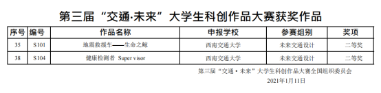 李然老师指导的参赛作品《地震救援车——生命之鲸》和《健康检测者Super visor》,本届大赛共评选出特等奖作品7件、一等奖作品22件、二等奖作品33件、三等奖作品49件。