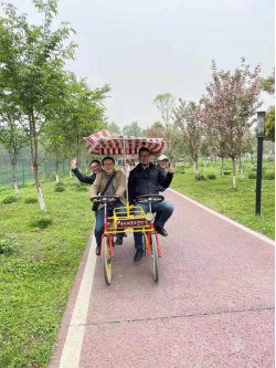 教职工们三五成群结伴出游,或选择进行自行车骑行,或选择散步漫游,伴着明媚的阳光,沿着绿道徐徐前进,在缓慢前行的旅程里,静静地欣赏四周的美景,感受视觉的变幻。户外幽静的村庄,朴实的农民,呈现出一派亲近自然、花海融春,山水相依的生态意境。大家在享受优美自然景色的同时,也不忘留影纪念,增进彼此的情感。