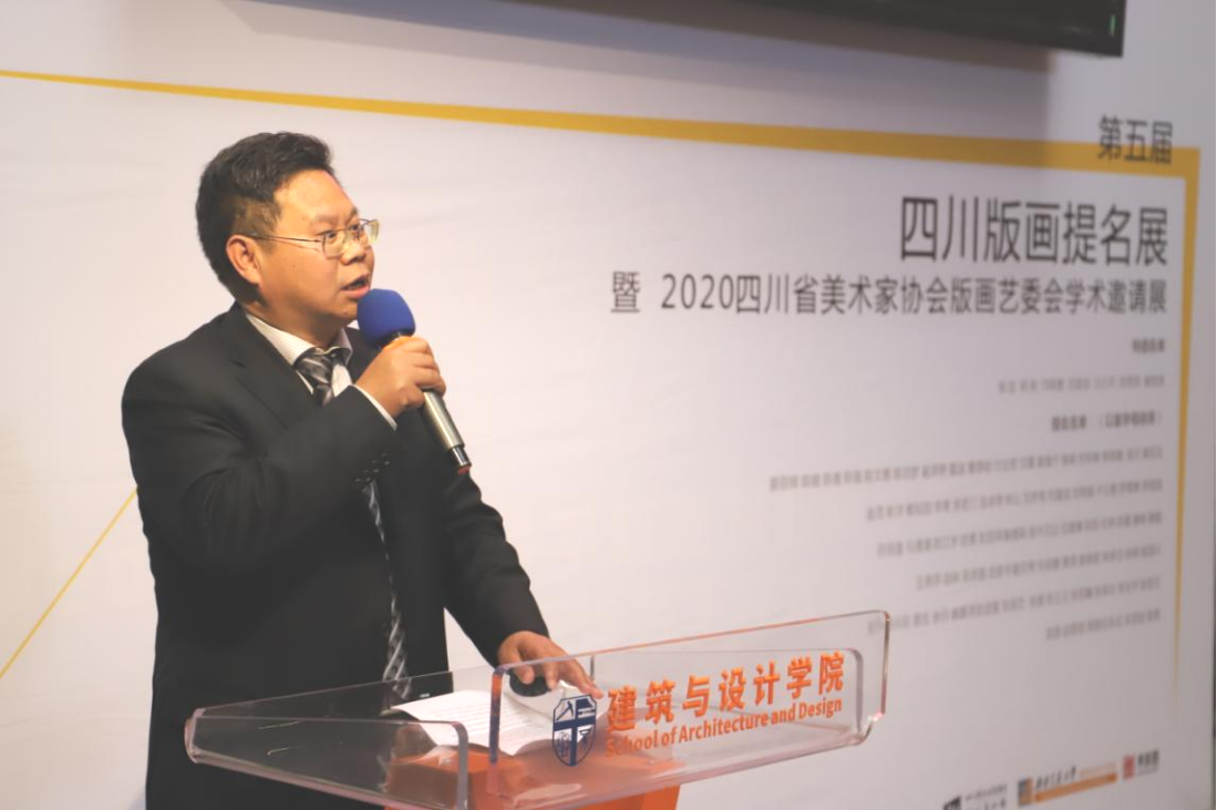 ,为交大学子带来诸多美术作品,提升交大学生的审美能力和综合素质,同时他说到:本次展览是在党的十八大以来,习近平总书记高度重视文艺事业的发展,在一系列重要讲话中阐明了社会主义文艺的地位、意义和作用。提出了具有方向性、全局性和战略性的重要命题。丰富和发展了马克思主义文艺理论,明确了中国文艺的时代方位和使命任务。在习近平文艺思想的指引下,美术界发生了许多新变化,呈现出许多新气象。四川作为全国版画的重要阵地,从抗战时期就凸显出它的重要作用,几十年来四川的版画创作兴盛蓬勃,版画艺术家层出不穷,版画事业欣欣向荣,这一切都有赖于我们四川美术人才的卓越贡献。希望我们广大美术家要关注美术创作的学术品质,要注重优秀美术作品在培根铸魂中的重要作用,努力在创作中表达中国意境,追求中国风格、彰显中国气派。