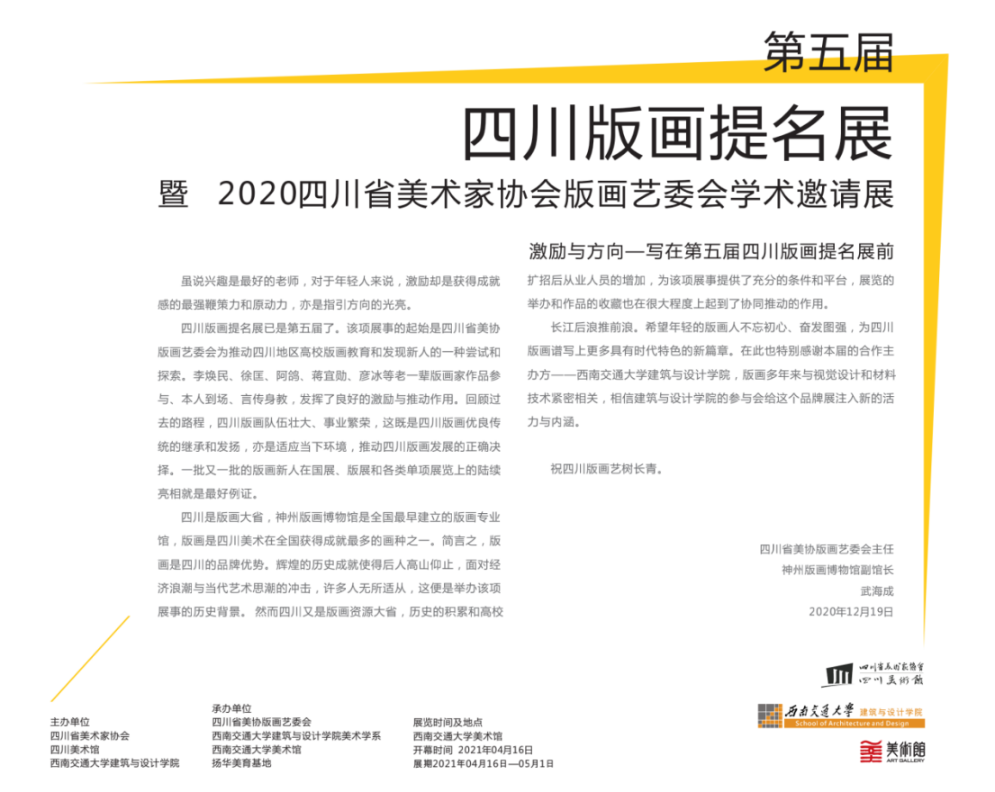 美术馆承办的“第五届四川版画提名展”暨“2020年四川省美术家协会版画艺委会学术邀请展”于2021年4月16日在卡通a片