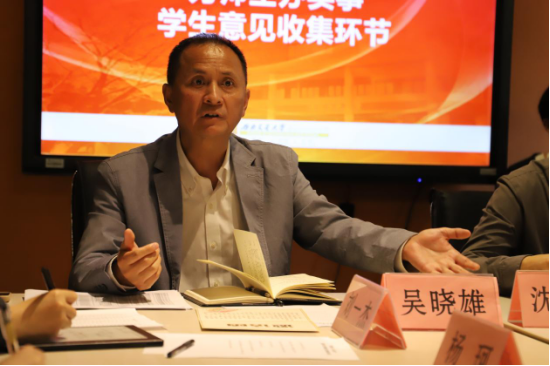 针对17级环艺专业学生代表钱秋凡同学提出的加强学生体育锻炼的建设这一问题,吴晓雄书记指出,体育建设不仅是体格的健壮,更是心理的慰藉,压力的释放。体育建设除了锻炼功能之外还存在教育学、社会学方面的功能,帮助培养心理素质、团队配合、迎接挑战等方面的能力。吴书记也提议将体育活动纳入今后的学生活动中。
