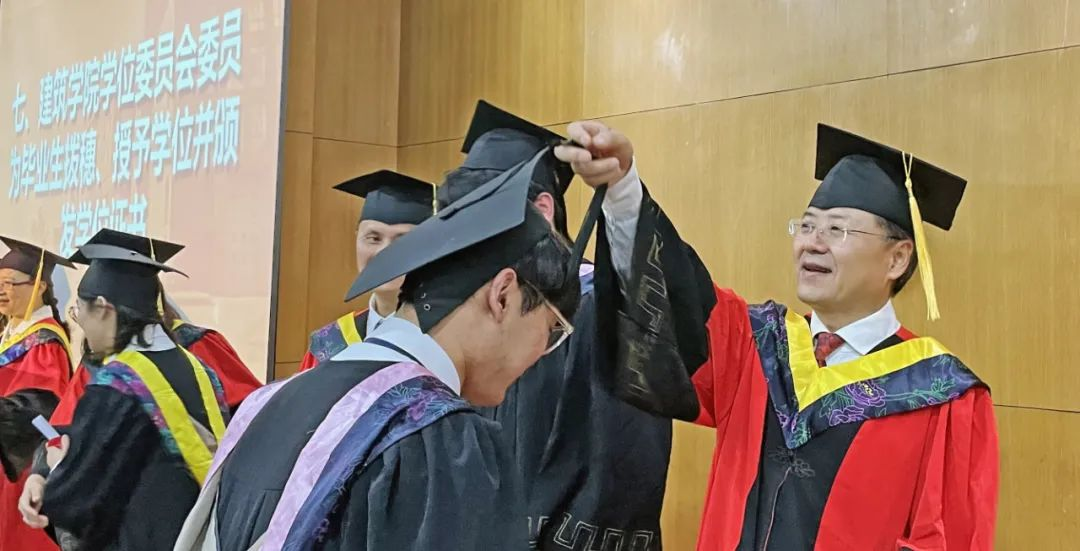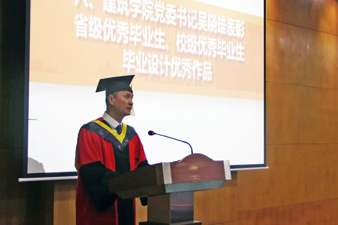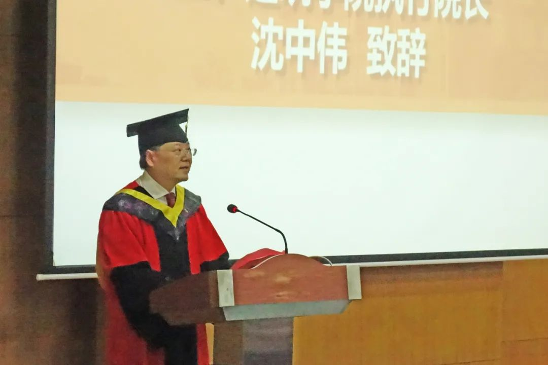 执行院长沈中伟教授发表致辞,寄予毕业生们三点殷切期望与嘱托:一是要仰望星空,脚踏实地,永葆学习热情。人生如行路,只有找到目标才会有前进的方向,只有踏实勤奋才会成就幸福的人生。二是要善良而正直,自信而谦和,将视野、格局和情怀融入建筑事业。三是要心怀国之大者,肩负社会责任,为民族振兴贡献青春力量。