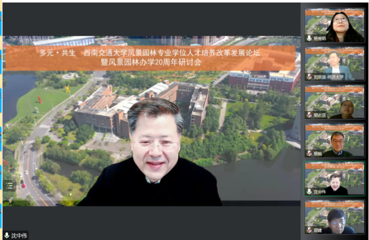 邱建教授,中国建筑西南设计研究院有限公司总建筑师刘艺和美国SWAGroup集团首席设计师郑潇女士。专家们的精彩报告为百年未有之大变局时期的风景园林专业发展及人才培养方向提供了深度的思考与启发。