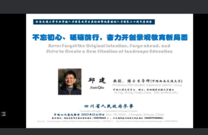 风景园林专业(景观)之专业建设初心,回忆在工业化和生态恶化的背景下,其远赴英国求学领悟到的风景园林学科专业存在的价值和意义。随后,邱教授介绍了20年来交大景观专业的探索成果,并以天府新区的建设为例,探讨卡通a片
