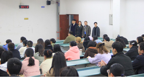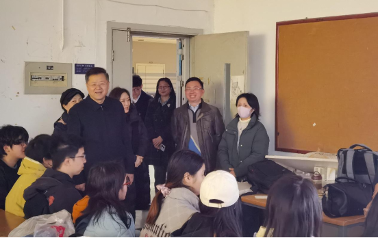 领导班子成员与教务员、辅导员走访学生课堂,了解课堂教学情况并看望师生。