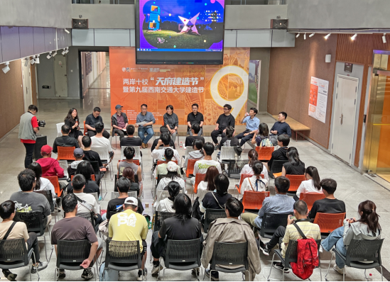 中庭,面对面的交流此次天府建造节的感悟与收获。座谈会上,青年建筑师们的发言热情洋溢,同学们踊跃提问、积极聆听一线建筑师的建议和经验,整个座谈会获得圆满成功。