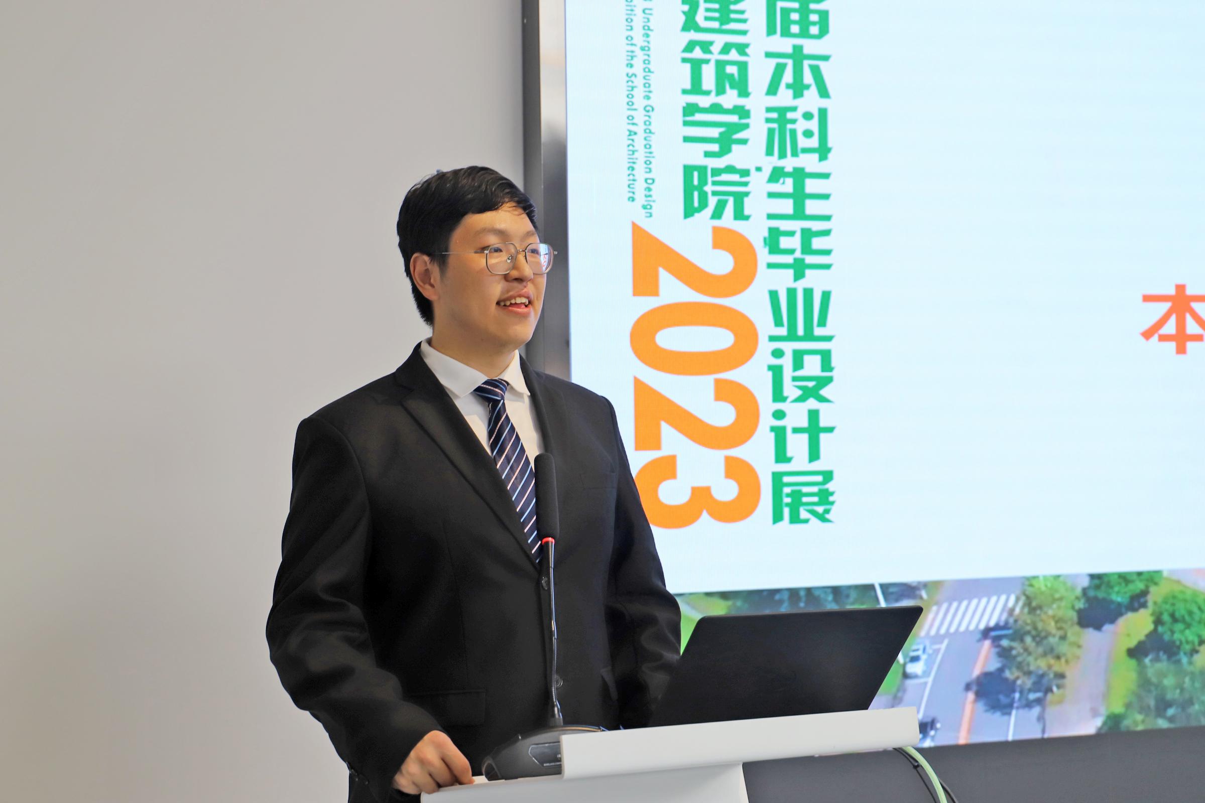 本科毕业生代表2018级建筑学专业徐宇飞同学在发言中讲到:作为本科设计的集大成者,毕业设计负有总结本科阶段学习的责任,综合考察了学生本科期间学习本领的情况。而毕业设计作品展则是集中展现这一教与学成果的平台,感谢学院老师们对每位学生的辛勤付出,是老师们的倾囊教授和谆谆教诲,让我们达到今天的学业水平。着眼未来的发展,毕业设计必将成为我们书写后续人生的一个美好的开局。
