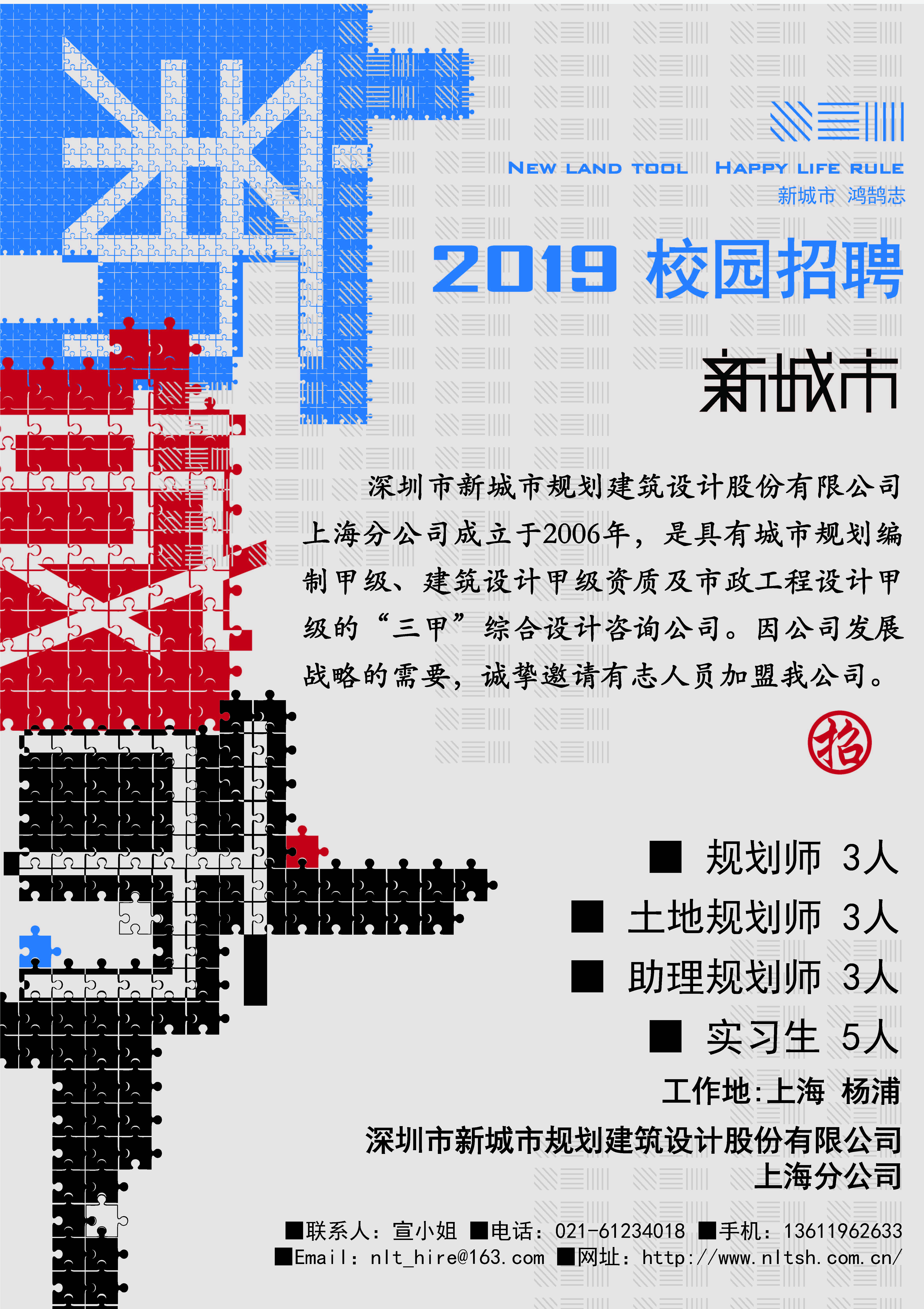 【招聘信息】深圳新城市规划建筑设计股份有限公司上海分公司2019校园招聘