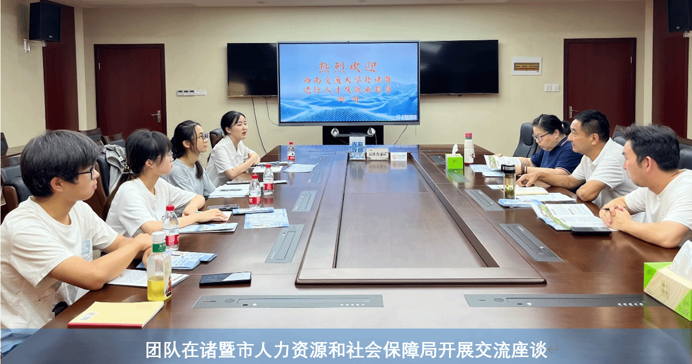 实践团队前往诸暨市人力资源和社会保障局开展交流座谈。座谈会上人社局钟主任向大家介绍了近年来诸暨市高层次人才引进政策,回答了团队的诸多采访提问,就“就业市场饱和”“简历完善”“大城市就业冲击下诸暨高层次人才就业优势”“实习待遇”等问题进行解读,着重强调了诸暨市高层次人才就业政策的优势,钟主任表示希望能与我校建立更为密切的联系。此外,工作人员还向同学们详细介绍了“鼓励支持人才来诸交流”“大力引进高校毕业生”“加大博士后招引力度”“加强大学生创业支持”等政策细则,表达了对我校人才的求贤之情,让同学们对诸暨人才就业有了深入认识。