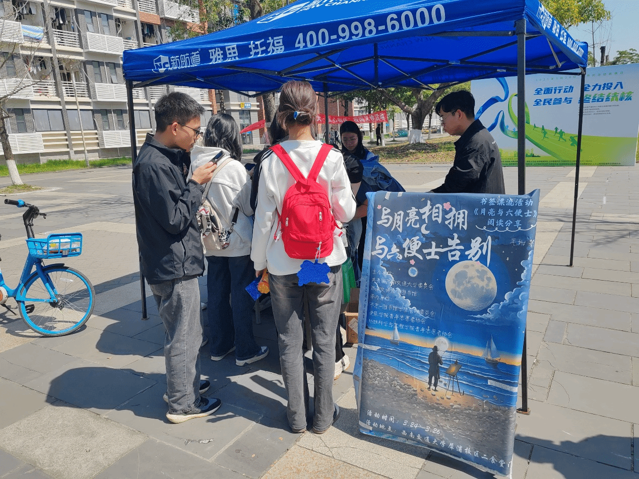 青年志愿者协会、地球科学与工程学院青年志愿者协会和图书馆学生管理委员会联合举办的“书签漂流”活动在校园生活园区顺利开展。本次活动以英国作家毛姆的经典小说《月亮与六便士》为主题,通过创意书签设计、互动留言和书籍分享等形式,引导同学们思考理想与现实的关系,吸引了众多师生热情参与。