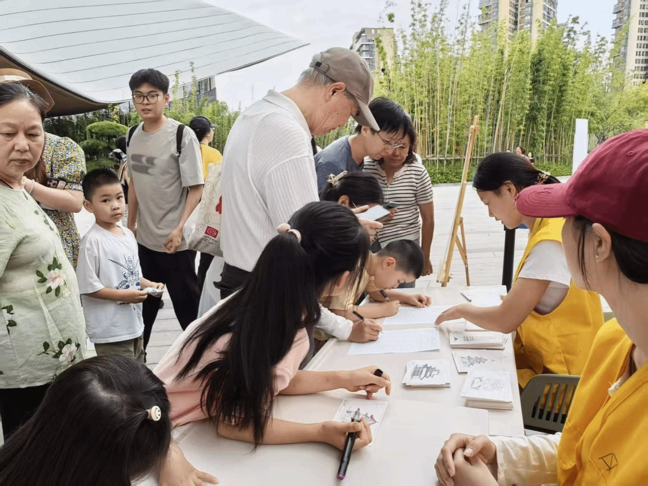 专业优势,志愿者们为参观艺术展览的国内外游客带来传统古建明信片手绘等文创体验,让文化服务更具深度。