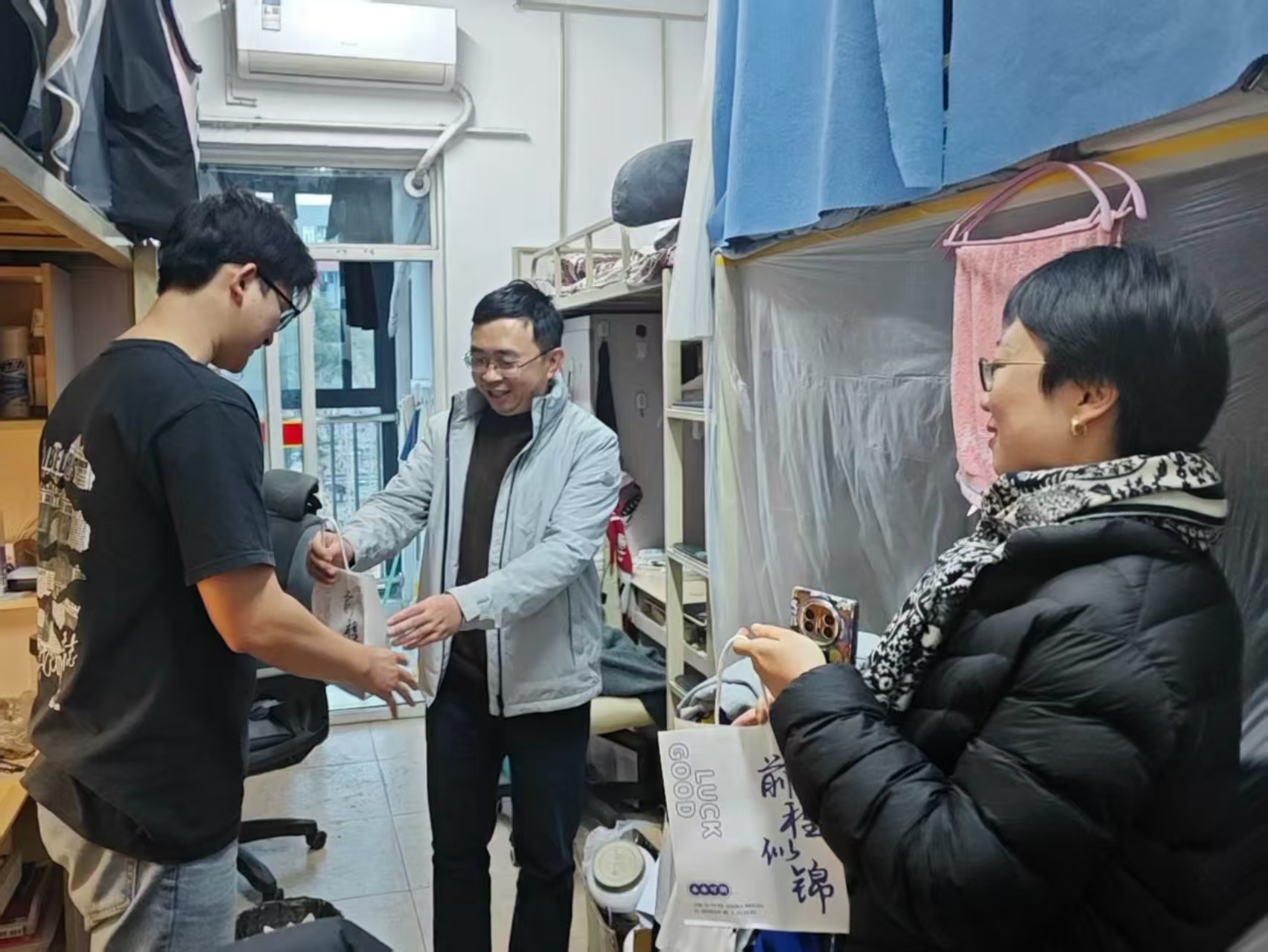 老师们集体深入学生宿舍,对留校同学表达了亲切问候,并向同学们致以新春的祝福。慰问过程中,卡通a片