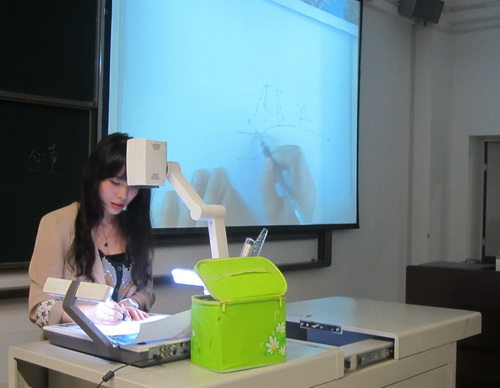 王老师一边现场演示,一边口头讲解相关技巧和注意事项,为大家展示了快速淡彩手绘的快题设计,传授了彩铅、马克笔的混合使用方法,教同学在不打铅笔底稿的情况下,如何用钢笔进行快速的描绘,以及快速的上色。在场同学的目光始终被大屏幕上线条、色彩的生成深深吸引。