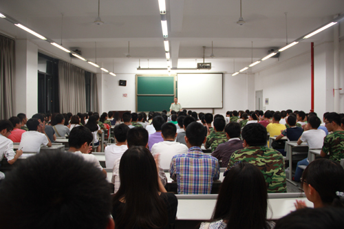 最后,方翰老师表达了对同学们进入大学的一些希望:同学们都是通过了高中的努力学习才来到大学,在大学期间,除了要学习更多的知识,更重要的是要培养更多做人方面的技能。大学就像一个小社会,同学们应当在这里学会独立,学会照顾好自己。同时,大家现在是同学,今后也会成为很好的朋友,所以大家要学会团结互助,学会与师生交流,大学珍贵的友情将会是同学们人生中的珍贵财富。所以希望同学们能在接下来的大学生活中创造属于自己的辉煌。