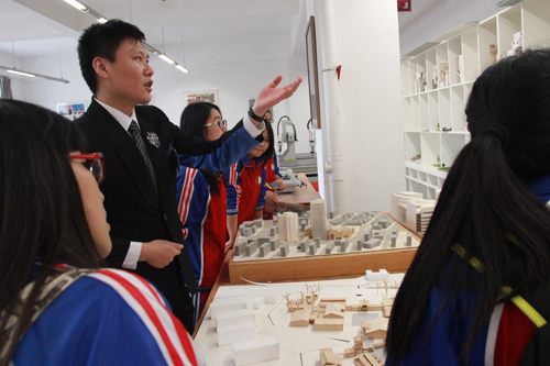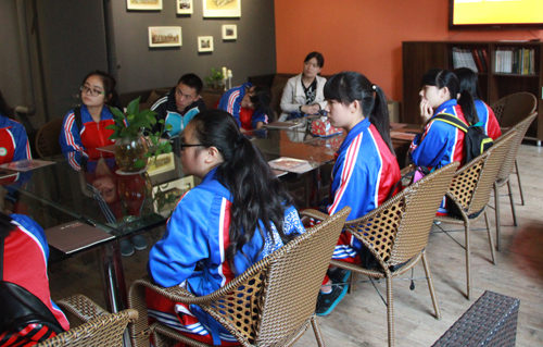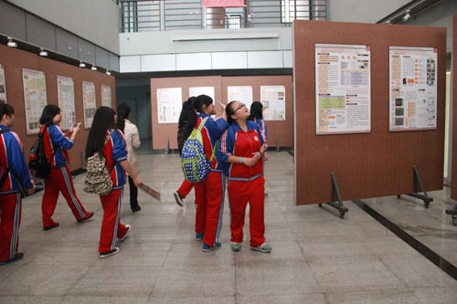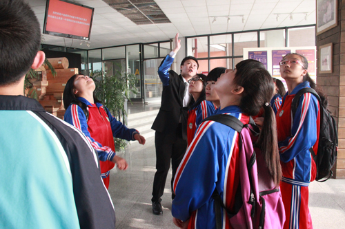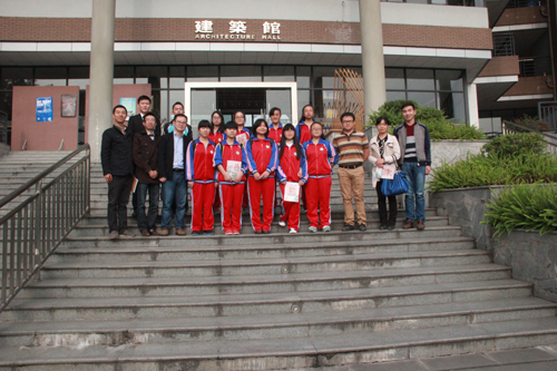 2014年10月19日,中建西南院团委副书记严一云、总经理助理刘翔与西南院资助的10名名山一中的学生来到卡通a片 参观学习、。