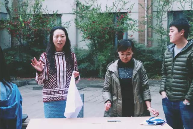 活动开始后,各小组成员认真倾听指导老师讲扎染的历史及扎染的制作方法。首先,他们将白色的布以自己喜欢的方式折好,然后用线扎起来。扎染的奇妙之处就在于,由线紧紧缠绕的部分不会被染上颜色,仍是最初的白色。所以想要留有空白,一定要将布扎紧。扎好后,将扎好的布用冷水浸湿。紧接着,将浸湿的布放进各色染缸内染色,染色过程不能少于十分钟。现场有多种颜色的颜料供同学们选择。颜料用热水化开,趁热染才能让颜色呈现出最佳的效果。但这些各色染料具有腐蚀性,不能与肌肤直接接触。需留意的是染过色的布要用冷水冲洗后再浸入另一颜色的染缸,这样才不会产生染缸颜料混杂的情况。两种颜色的交界处会呈现一种混合后独特的效果,这也是扎染的魅力之一。最后一步,将染好色的布用吹风吹得半干后,再拆开所有的线便能得到最终成品。