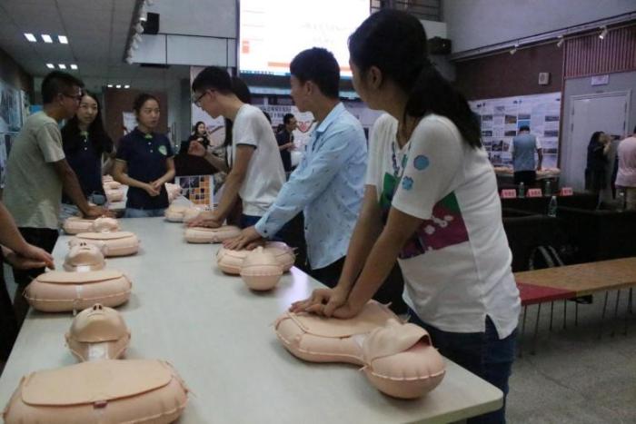 首先由四川大学华西医院特邀嘉宾乔莉娜教授讲解心肺复苏相关知识,使大家对心肺的生理结构和复苏法的要领有了基本了解。然后同学们通过现场准备的模拟人进行实践练习,进一步掌握心肺复苏法的操作技能。最后由副护士长杨光亲自演示,使同学们关于心肺复苏的知识得到进一步巩固。