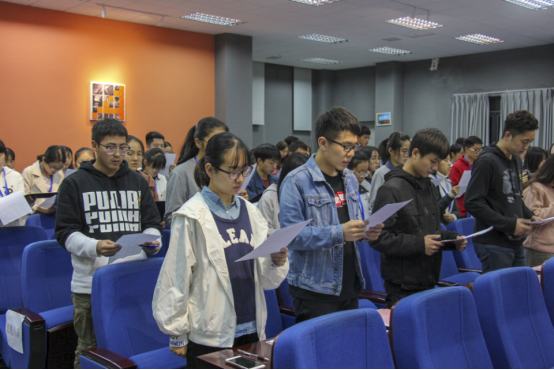 大会最后在第十七届副会长范婷婷领读下,共同宣读了《建筑与设计学院学生干部自律公约》,倡导大家恪守学生本分,扎扎实实做事,秉承为同学服务的宗旨,甘于奉献,互相帮助,克服精致利己思想,坚决抵制社会不良习气侵蚀。