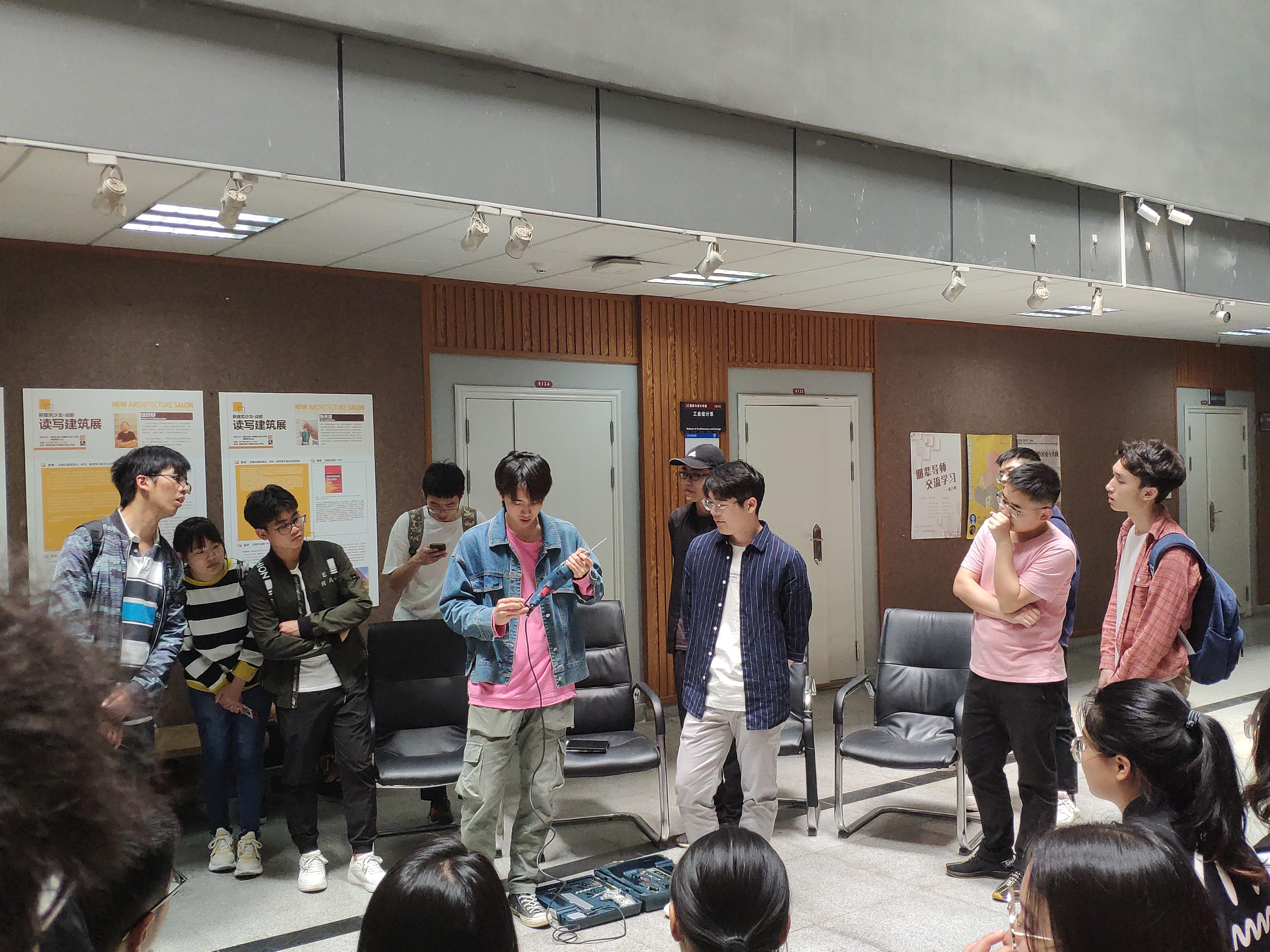 接着,各位学长分享了自己之前参与建造节的心得,以及部分建造工具使用技巧。周冶提醒同学们注意模型与实物在建造过程中的区别,强调建造过程中应当注重团队配合,合理分工。而王浩则借用真实案例告诫同学们提升安全意识。最后陈鹏、冉朋举亲自示范了建造工具的安装方法与使用技巧,并说明各种工具使用过程中的注意事项。提问环节,各位党员学长对同学们的问题也一一作出解答。
