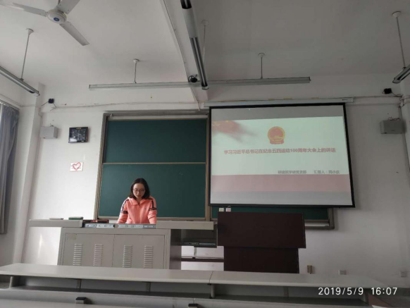 建筑与设计学院研建筑学学硕党支部在学院X8539召开了主题为“学习习近平总书记在纪念五四运动100周年大会上的讲话”主题党日活动。