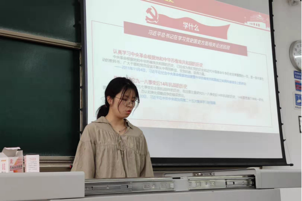 最后,李聪同志向我们推荐了学习党史国史的相关书籍及相关影片。大家为李聪同志的介绍和推荐表示热烈的感谢,同时也积极讨论了自己对国史党史的看法和认识,大家补充了更多相关资料,纷纷表示以后要更多的了解党史国史,深入研究其中的精神和内容,努力为建设社会主义强国贡献力量。