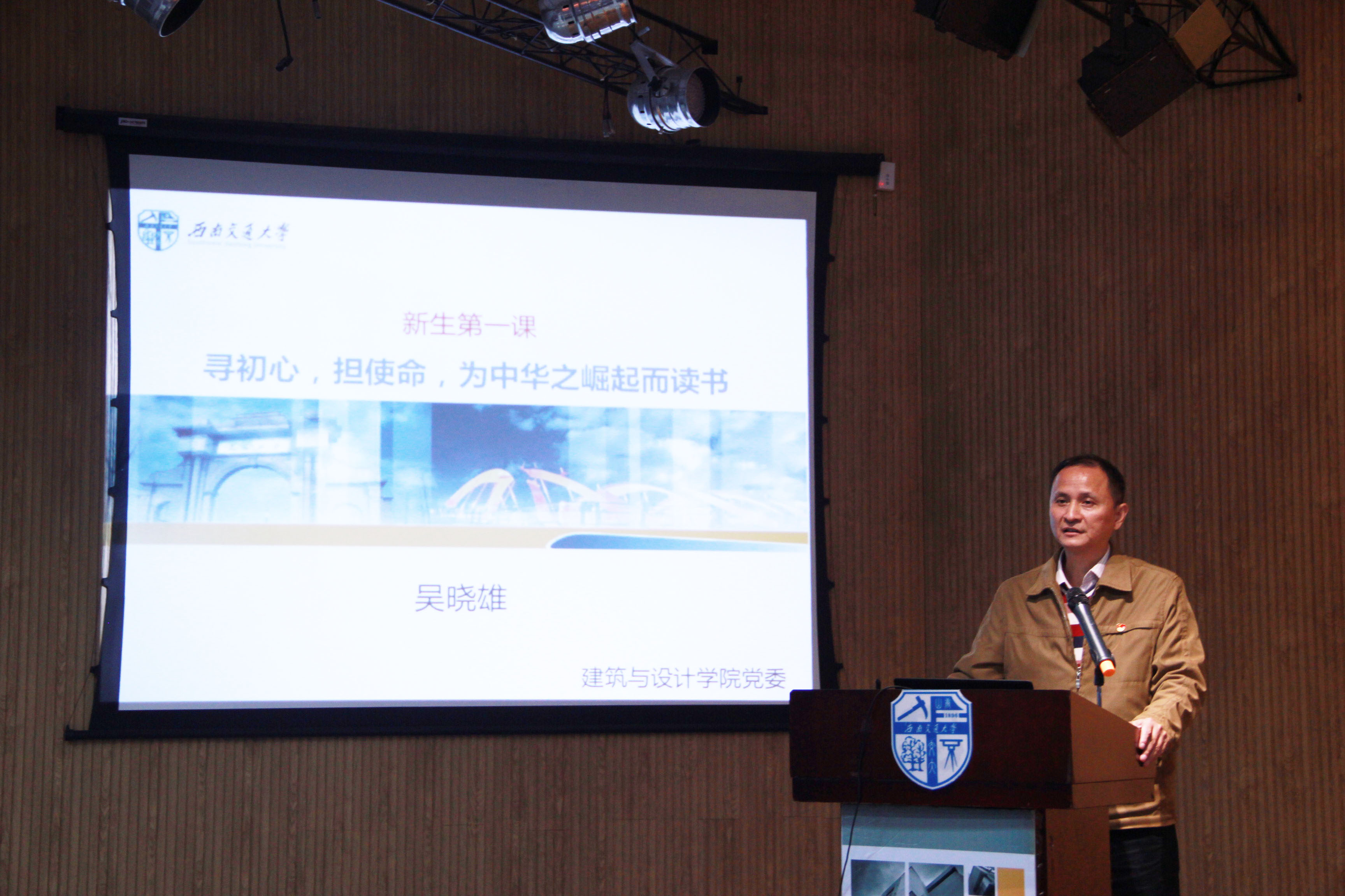 在建筑与设计馆300报告厅开展了“不忘初心,牢记使命”主题教育,院党委书记吴晓雄给同学们带来了一堂主题为“寻初心,担使命,为中华之崛起而读书”的新生第一课。辅导员周冶、曾琳茹、袁毓璟老师和2019级全体新生们参加了这次教育。