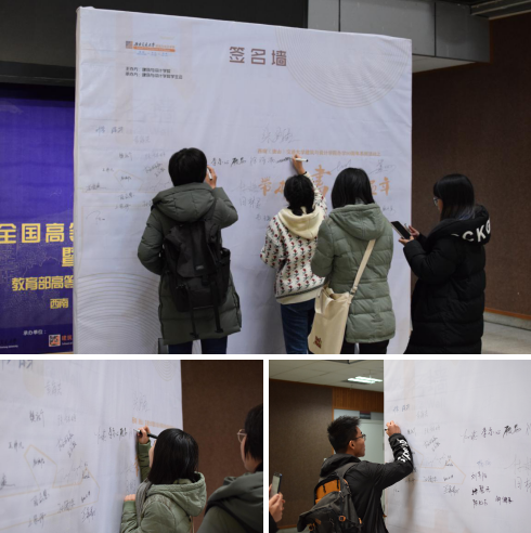 11月22日中午11:00,建筑与设计学院学生会在建筑与设计馆中庭举行“带一本好书回家”寒假读书动员活动的签名会,2019级的本科生依次在签名墙上签名报名参加本次读书活动,用书本丰富自己的寒假时光。