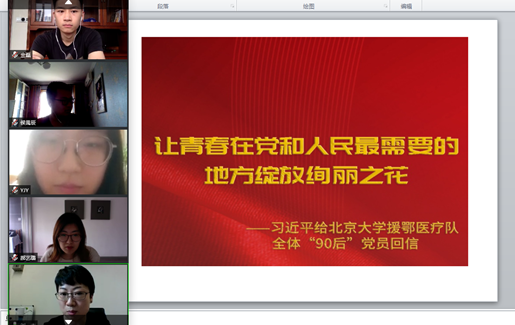 学生党支部在疫情期间利用网络平台开展了线上党支部组织学习活动,深入学习贯彻了“习近平总书记重要回信精神加强新时代高校青年党员队伍建设”个人使命与责任担当,以及抗疫精神学习与抗疫故事分享,学习习近平总书记给北京大学援鄂医疗队全体“90后”党员回信内容及精神。信中习近平总书记高度赞扬了“90后”青年在疫情防控斗争的一线不畏艰险、冲锋在前、舍生忘死、为疫情防控战交出了一份合格答卷,充分肯定新时代的中国青年是好样的,是堪当大任的,青年一代有理想、有本领、有担当,国家就有前途,民族就有希望,也肯定了广大青年在疫情防控工作中的重要作用。