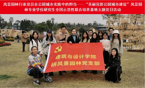 10月29日,建筑与设计学院研风景园林教师党支部、研风景园林党支部、四川省建筑设计研究院有限公司五院党支部在桂溪生态公园开展“公园城市建设中风景园林行业党员的担当”主题党日活动。