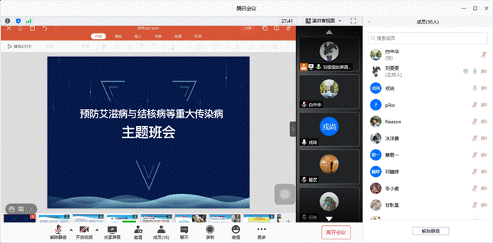 建筑与设计学院研2018级建筑学专硕1班与风景园林班会议在腾讯线上会议室顺利召开。此次大会由2018级辅导员戎尚老师主持,2018级建筑专硕1班,2018级硕士风景园林班的同学参加了此次会议。本次会议的内容主要包括两方面,一是让同学们学习和了解如何防治艾滋病和肺结核这些重大传染性疾病,增强预防传染病的能力;二是再次开展防诈骗学习,强化同学们的诈骗学习意识。