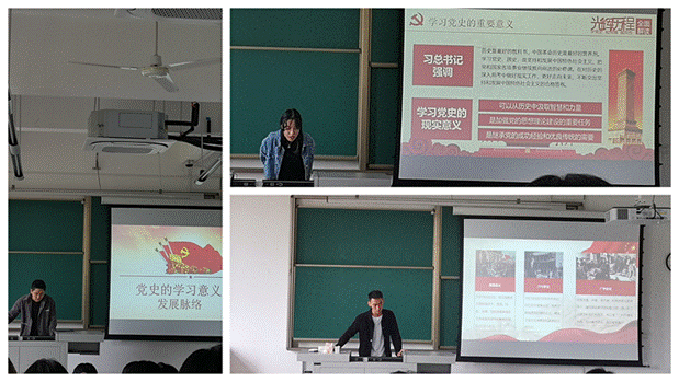 紧接着,苏润,陈畅,杨玄桦三位预备党员同志分别就“中华民族伟大复兴的三大里程碑”、“学习党史的重要意义”、“党史学习教育意义及发展脉络”给大家阐述了中国共产党的历史,让同学们进一步深刻理解到党的历史是砥砺前行、攻坚克难、刀刃向内、不断前进的历史,增强了同学们的爱国主义精神。