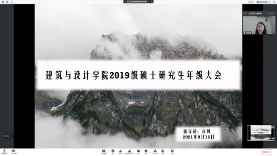 建筑与设计学院研2019级“毕业派遣相关知识培训”年级大会于线上会议室顺利召开。此次大会由研2019级辅导员杨珂老师主持,2019级全体研究生们参加了此次会议。