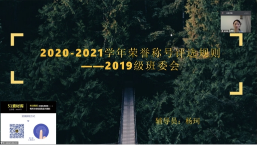 建筑与设计学院“2020-2021学年荣誉称号评选规则——2019级班委会”指导会议以线上会议顺利召开。此次指导会由研2019级辅导员杨珂老师主持,2019级研究生全体班委参加了此次会议。