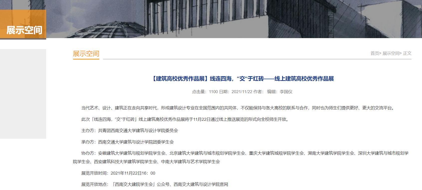 2021年11月22日,线连四海,“交”于红砖——建筑高校优秀作品线上展在卡通a片