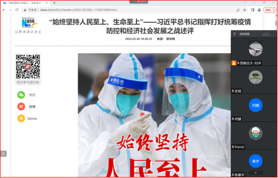 博士党支部采用腾讯会议召开组织生活会,深入学习贯彻“始终坚持人民至上、生命至上”——习近平总书记指挥打好统筹疫情防控和经济社会发展之战述评。