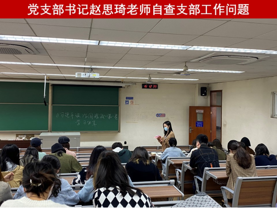 接着,赵思琦对发展党员工作中相关材料要求,关键程序、确保入党工作的规范性、严肃性进行了强调,并对支部党员发展工作进行自查,就支部建设以及实际运行情况进行对照和检视,助力支部的建设更制度化、规范化和标准化。