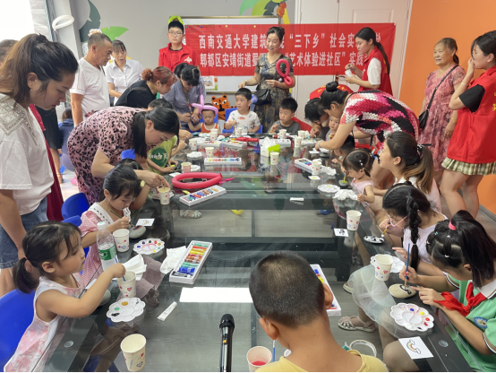 “三下乡”赴郫都区蜀源社区“艺术体验进蜀源”暑期社会实践公益志愿服务活动顺利开展,蜀源社区工作人员与卡通a片