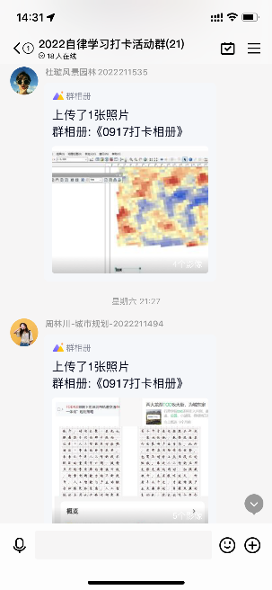 2022年9月18日,为期7天的以“学”战疫,不负青春——七天自律学习打卡活动圆满结束。本次活动共吸引20余名建院学子热情参与,累计打卡150余次。同学们以论文笔记、读书笔记、艺术创作等不同形式进行学习打卡,活动群内学习气氛高涨,成果颇丰。