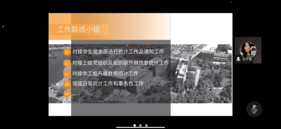 接着,由学生会、研究生会、青年志愿者协会、班级联合会等各个组织负责人依次发言,分别向指导老师汇报本学期工作计划以及活动内容,各位学生干部们都提到,在今后的工作中,把努力为同学服务作为工作目标,认真聆听广大同学诉求、积极畅通校园沟通协调渠道、实心实意帮助同学解决困难,努力营造出具有高度凝聚力和执行力的新型学生组织。