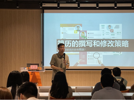 本次培训面向全体需要实习、就业的同学,大家通过与刘野老师的互动交流,对简历和面试环节有了更深刻的认识,加紧了自己对今后学习的时间安排,提前为实习、找工作做好详细的准备,现场弥漫着一股浓厚的学习氛围。