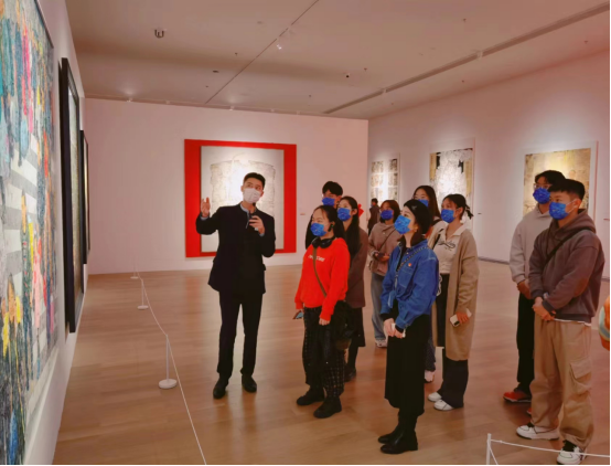 2021级绘画班团支部举行“新时代华章——成都市喜迎党的二十大美术作品展”观展交流活动,在参观中感受新时代的主旋律,院团委书记孔翔榆同志随支部一同参观并参与观后讨论会。