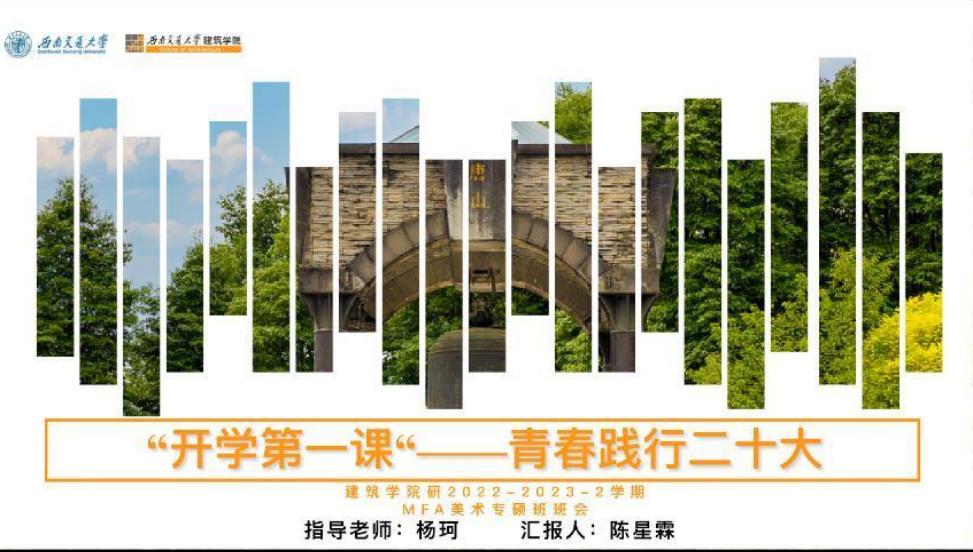 2022级MFA美术班于2023年3月7日,线上组织开展了“青春践行二十大”系列主题班会。班会紧紧围绕“爱国、团结、奋斗、科学、互助”五个关键词进行,班长陈星霖主持这次会议。