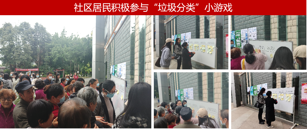 随后,杜璇同志带领大家参与“垃圾分类”小游戏。现场先向社区居民讲解如何区分可回收垃圾、厨余垃圾、有害垃圾、其他垃圾,通过粘贴写有垃圾名称的便利贴到对应的垃圾分类桶上,粘贴正确会得到小礼物,粘贴错误会现场指出容易混淆的垃圾。通过将游戏与科普相融的形式,向社区居民宣传垃圾分类管理条例,鼓励大家积极参与到垃圾分类中来。